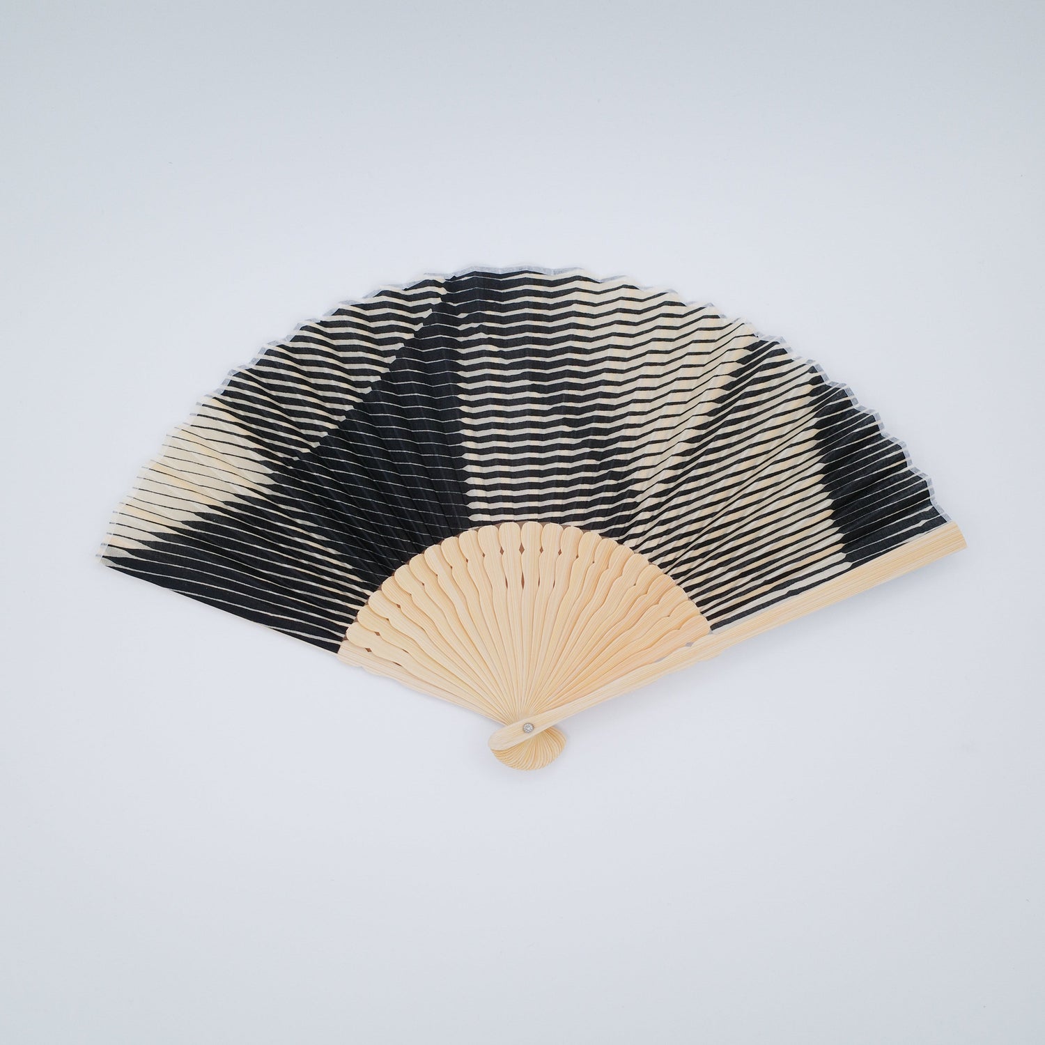 一本として同じものはありません。畳んだときと広げたときで、柄の見え方が変わります。ストライプの角度が変化し、光の当たり方によって濃淡も異なります。使うたびに、新しい表情を見せてくれる扇子です。