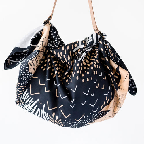 You can easily convert your furoshiki into a simple shoulder bag with one of our handmade straps &mdash ideal for lightweight travels, or in those unexpected moments when you need an extra bag.