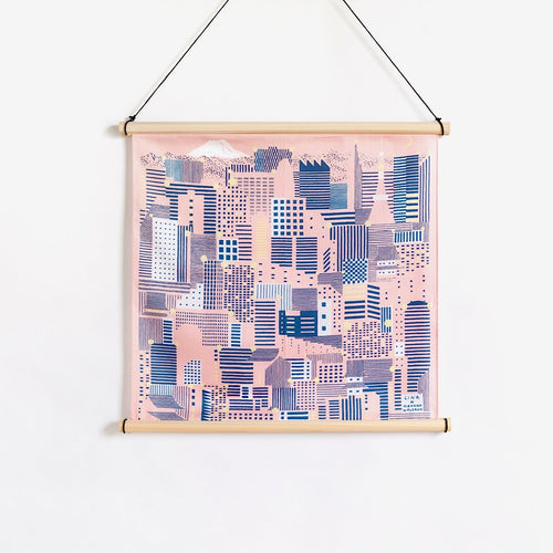 デザイナー、ハンナ・ワードロンが初めて東京を訪れた時に感じた気分をインスピレーションにデザインした53x53cm の小さめの風呂敷。